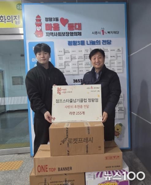 뉴스100 김동초 기자 | 점프스타줄넘기클럽 정왕점은 지난 12월 29일 정왕3동 지역사회보장협의체를 찾아 저소득 결식 우려 가구를 위한 라면 255개를 전달했다. 이번 후원은 학원생들이 어려운 이웃을 돕기 위해 직접 라면을 모아 마련한 것으로, 나눔의 의미를 더했다.