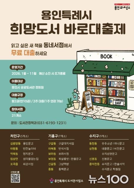 뉴스100 김동초 기자 | 용인특례시는 시민들의 높은 호응을 얻었던 희망도서 바로대출제를 내년 1월 2일부터 시행한다고 30일 밝혔다.