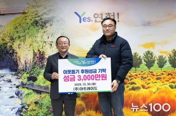 뉴스100 김동초 기자 | 연천군은 지난 30일 오후 5시 군수실에서 ㈜아트레이드와 기탁식을 가졌다고 밝혔다.