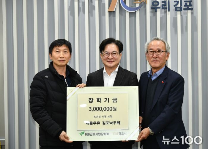 뉴스100 김동초 기자 | 서울우유 김포낙우회가 지역사회의 어려운 소외계층 학생들에게 도움을 주고자 김포시민장학회에 300만원의 장학금을 전달했다.