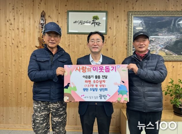 광탄 5일장 상인회(회장 정찬경)는 지난 30일, 관내 취약계층을 돕기 위해 라면 50상자(137만 원 상당)를 광탄면에 기탁했다. 이번 기부 물품은 경기 침체 속에서도 이웃을 먼저 생각한 상인들이 자발적으로 마음을 모아 마련한 것으로, 도움이 필요한 가정에 배부될 예정이다.