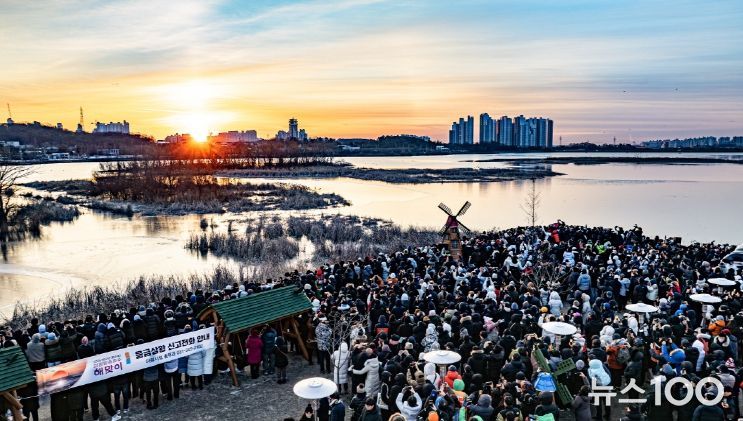 뉴스100 김동초 기자 | 2026년 병오년(丙午年) 새해 첫날인 1일, 이른 새벽부터 의왕시 왕송호수는 첫 일출을 보려는 시민들로 붐볐다.