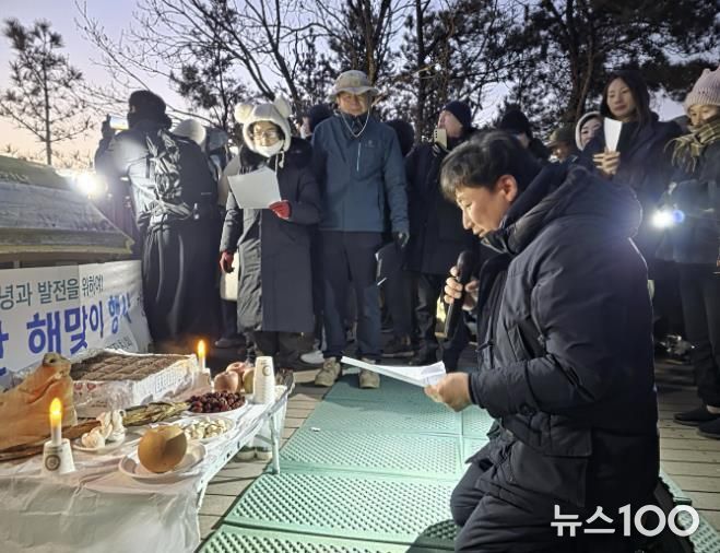 뉴스100 김동초 기자 | 권선구 금곡동 주민자치회는 2026년 병오년을 맞아 1월 1일에 칠보산 정상의 파노라마 전망대에서 지역의 주요 인사와 주민 등 100여 명이 모여 해맞이 행사를 개최했다.