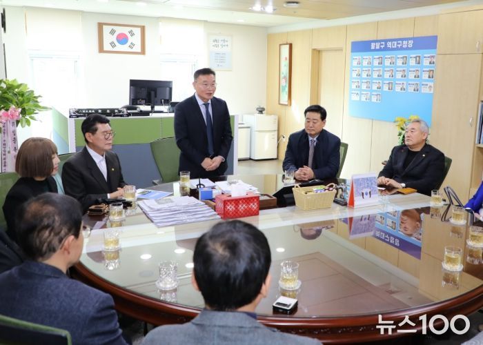 뉴스100 김동초 기자 | 팔달구는 황규돈 팔달구청장 취임을 맞아 1월 5일 사통팔달협의회(회장 정찬해) 임원진과 취임 첫 간담회를 개최하고, 신년 인사와 함께 지역 발전을 위한 소통의 시간을 가졌다.