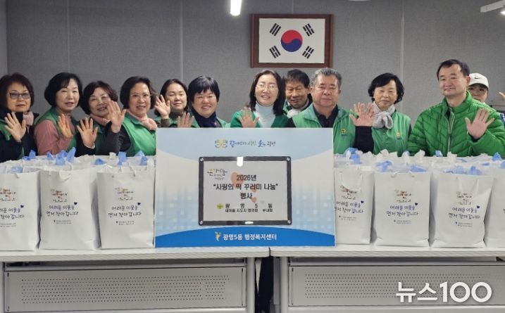 뉴스100 김동초 기자 | 광명시 광명5동 행정복지센터는 지난 5일 새마을지도자협의회 및 새마을부녀회 주관으로 관내 저소득 취약계층 50가구에 ‘사랑의 떡 꾸러미’를 전달했다.