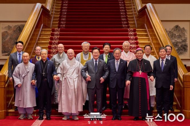 뉴스100 김동초 기자 | 이재명 대통령은 2026년 신년을 맞아 오늘 낮 12시 청와대에서 국내 주요 종교지도자들을 초청해 오찬을 겸한 간담회를 가졌다.