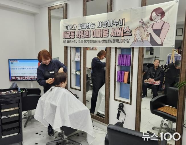 뉴스100 김동초 기자 | 지난 14일 수원시 팔달구 매교동은 관내 마를린 헤어숍과 함께 머리 손질을 희망하는 관내 어려운 이웃 16명에게 ‘사랑의 이미용 서비스’를 제공했다고 밝혔다.
