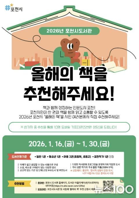 뉴스100 김동초 기자 | 포천시는 ‘2026년 포천시 올해의 책’ 선정을 위해 오는 16일부터 30일까지 시민 투표를 진행한다.