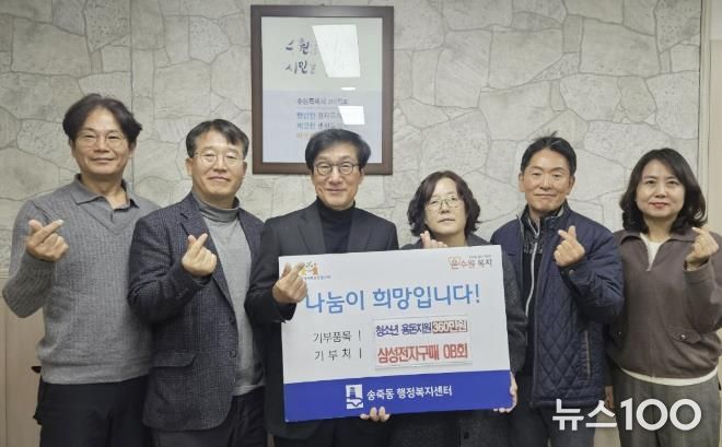 뉴스100 김동초 기자 | 수원시 장안구 송죽동은 지난 15일 삼성전자 구매OB회와 함께하는 ‘청소년 용돈지원사업’ 후원금 전달식을 개최했다고 밝혔다.
