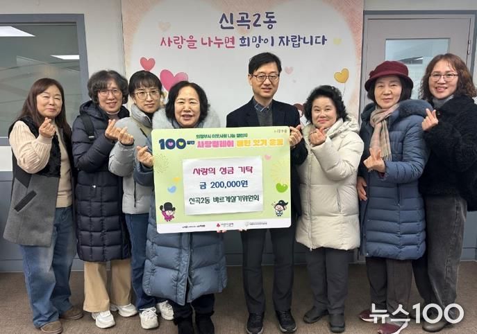 뉴스100 김동초 기자 | 신곡2동주민센터는 지난 14일 신곡2동 바르게살기위원회가 이웃돕기 성금 20만원을 기탁했다고 밝혔다.