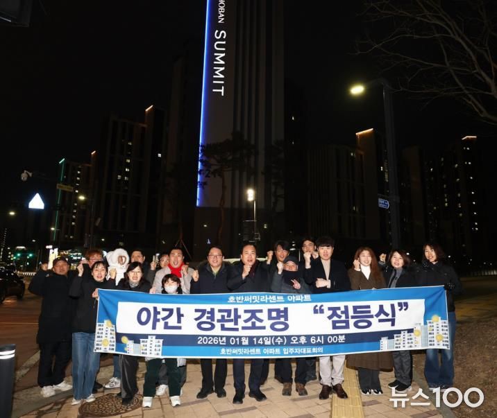 이번 점등식은 기존 옥탑부 조명을 보완해 새롭게 설치한 ‘라인 경관조명’의 본격적인 가동을 알리는 행사로, 아파트 외벽을 따라 조성된 경관조명이 점등되며 단지 전반의 야간 경관이 한층 밝고 쾌적하게 개선됐다.