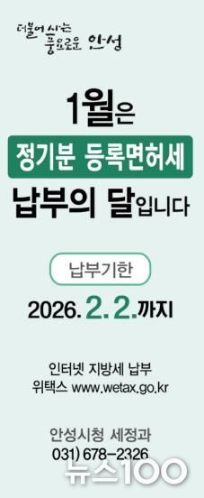 뉴스100 김동초 기자 | 안성시는 2026년도 정기분 등록면허세(면허분) 4만 2,100건에 대해 총 5억 5천만 원을 부과했다고 밝혔다.