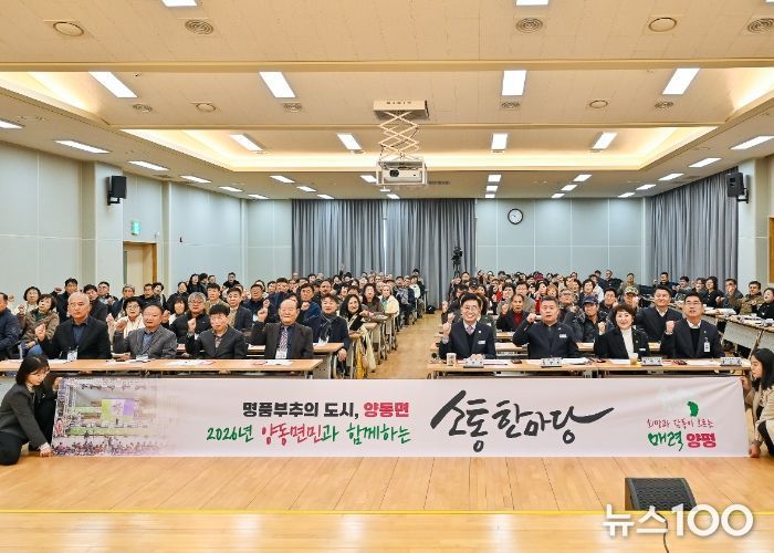뉴스100 김동초 기자 | 양평군은 16일 ‘2026년 군민과 함께하는 소통한마당’의 아홉 번째 일정으로, 양평군에서 가장 넓은 면적을 자랑하며 군의 극동에 위치한 ‘명품 부추의 도시’ 양동면을 방문해 면민들과 소통의 시간을 가졌다.