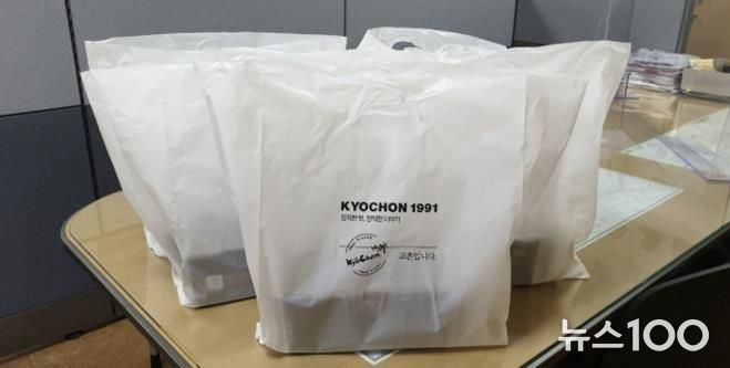 뉴스100 김동초 기자 | 수원시 영통구 매탄동에 위치한 교촌치킨 매탄2호점은 지난 16일, 지역 내 취약계층을 지원하기 위해 치킨 5세트를 매탄2동 행정복지센터에 전달했다.