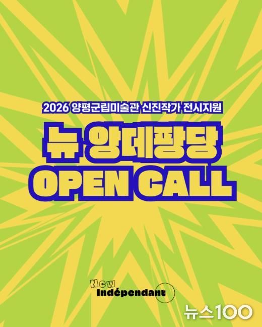 뉴스100 김동초 기자 | 양평군립미술관은 동시대 미술의 새로운 가능성을 모색하고 역량 있는 신진작가의 창작 활동을 지원하기 위해 양평군립미술관 신진작가 지원사업 ‘뉴 앙데팡당’ 공모를 시작한다.