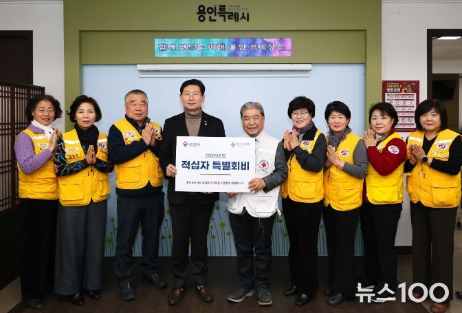 뉴스100 김동초 기자 | 이상일 용인특례시장은 19일 시청 시장실에서 대한적십자사 경기도지사에 2026년도 적십자 특별회비 200만원을 전달했다.