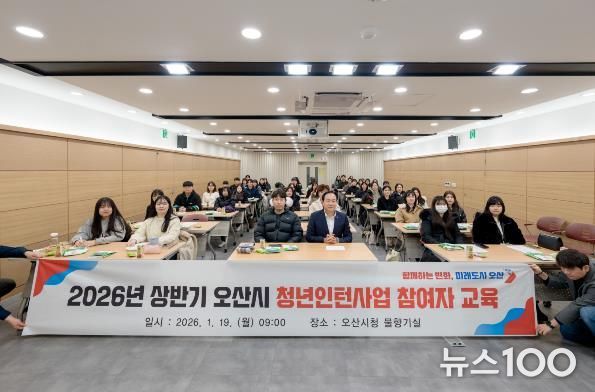뉴스100 김동초 기자 | 오산시는 지난 19일 시청 물향기실에서 상반기 청년인턴 46명을 대상으로 직무역량 강화교육을 실시했다고 밝혔다.