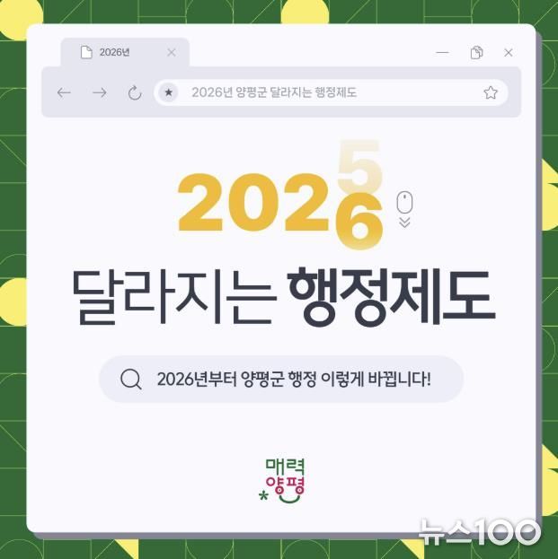 뉴스100 김동초 기자 | 양평군은 지난 16일, 2026년 새해를 맞아 보건·복지·청년·일반행정 분야의 행정제도를 확대·개선해 군민 생활 전반에 보다 촘촘한 지원과 체감도 높은 행정을 추진한다고 밝혔다.