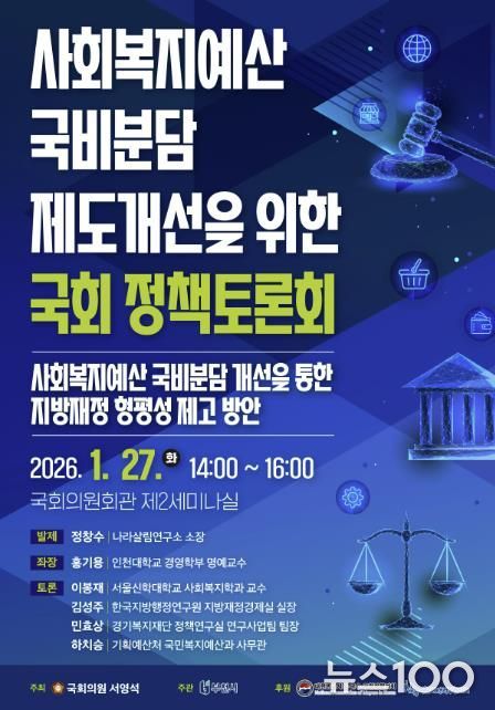아울러 사회복지예산 국비분담 제도의 현황과 과제를 짚고, 중앙정부와 지방정부 간 재정 책임을 합리적으로 조정할 수 있는 제도개선 방향에 관해 전문가 발제와 종합 토론도 예정돼 있다.