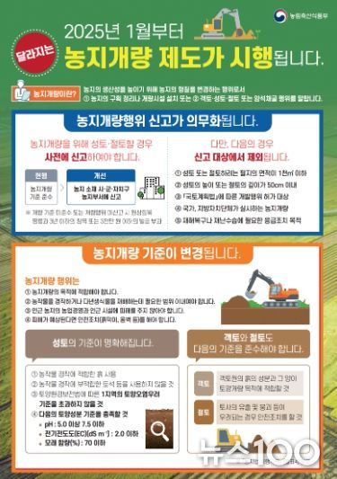 뉴스100 김동초 기자 | 고양특례시 덕양구는 농지 생산성 향상에 기반한 건전한 성토 문화 정착과 불법 성토 근절을 위해 시행 중인 ‘농지개량행위(성토·절토) 신고제도’ 홍보를 강화한다고 30일 밝혔다.