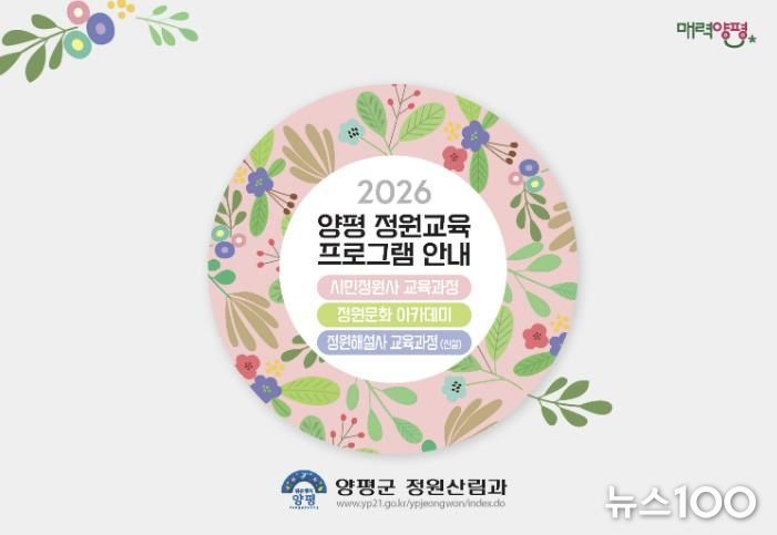 뉴스100 김동초 기자 | 양평군은 올해 제14회 경기정원문화박람회 개최를 앞두고, 특별 신설 교육과정을 포함한 2026년 정원교육 운영계획을 발표했다. 양평군 정원교육은 △시민정원사 △정원문화아카데미 △정원해설사 등 세 가지 분야로 운영된다.