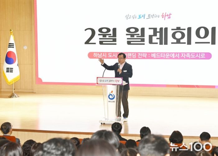 뉴스100 김동초 기자 | 하남시는 4일 별관 대강당에서 올해 첫 월례회의를 개최하고, 캠프콜번 개발 본격화 등 시정 주요 성과를 공유하며 ‘글로벌 경제 중심 도시 하남’을 향한 비전을 제시했다.