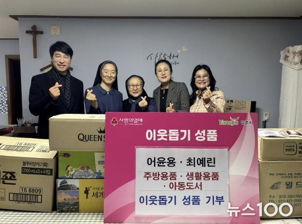 뉴스100 김동초 기자 | 양주시 회천3동은 지난 4일 어윤용·최예린 부부가 성가소비녀회 의정부관구 소속 수녀들이 돌보고 있는 시설에 후원 물품을 기부했다고 밝혔다.