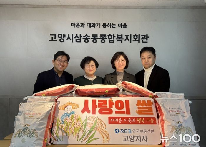 뉴스100 김동초 기자 | 고양시삼송동종합복지회관은 지난 3일, 설 명절을 앞두고 한국부동산원 고양지사로부터 쌀 500kg(10kg 50포대)을 후원받았다고 밝혔다.
