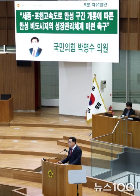 뉴스100 김동초 기자 | 경기도의회 도시환경위원회 박명수 의원(국민의힘, 안성2)은 5일 열린 제388회 임시회 본회의 5분 자유발언을 통해 세종~포천고속도로 안성 구간 개통 이후 급증하는 개발 수요에 대비한 비도시지역 성장관리체계 부재 문제를 지적하며, 경기도의 선제적 대응과 책임 있는 정책 결단을 촉구했다.