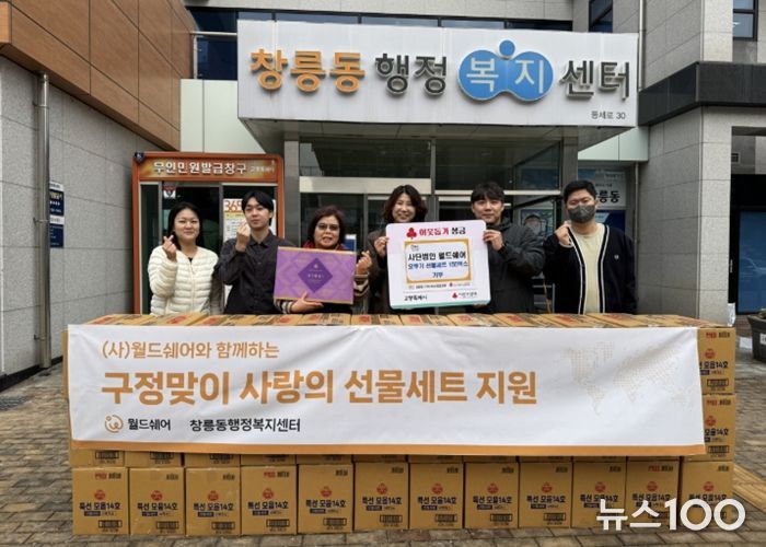 뉴스100 김동초 기자 | 고양특례시 덕양구 창릉동은 지난 4일 설명절을 맞아 국제구호개발 NGO 월드쉐어가 소외된 이웃을 돕기 위한 사랑의 선물세트 150박스(약 720만 원 상당)를 기부했다고 5일 밝혔따.