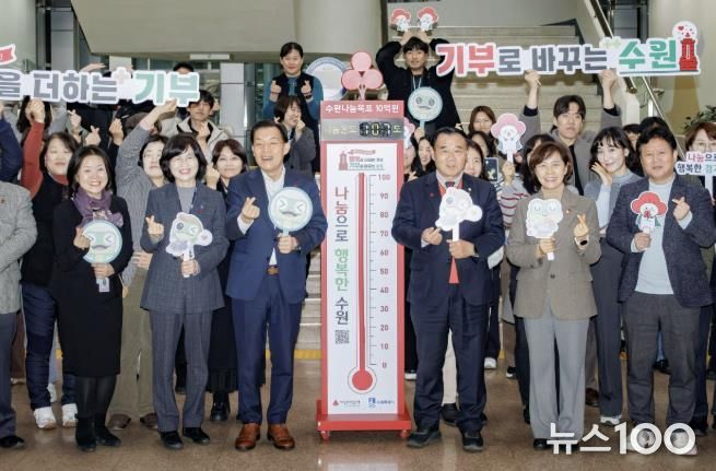 뉴스100 김동초 기자 | 수원특례시 ‘사랑의 온도탑’이 올해도 100℃를 넘겼다.