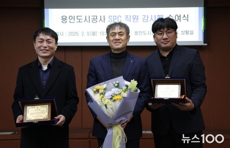 뉴스100 김동초 기자 | 용인도시공사는 9일, 용인시의 미래 핵심사업인 반도체 클러스터 일반산업단지와 제2용인 테크노밸리 조성 사업의 성공적인 추진을 위해 헌신해 온 특수목적법인(SPC) 임직원들에게 감사패를 수여했다고 밝혔다.