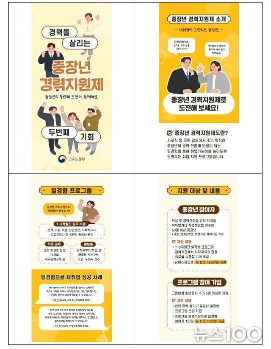 뉴스100 김동초 기자 | 고용노동부는 퇴직 이후 새로운 분야로 재취업을 준비하는 중장년을 대상으로, 실제 직무 경험을 통한 경력 전환을 지원하는 “중장년 경력지원제”를 시행한다.
