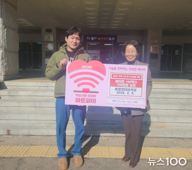 뉴스100 김동초 기자 | 안산시는 지난 9일 비엠인터내셔널(대표 김보미)로부터 비타민 100상자(100만 원 상당)를 기탁받았다고 10일 밝혔다.