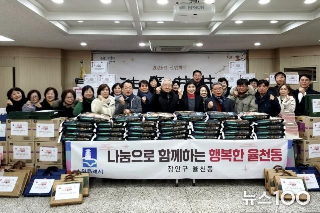 뉴스100 김동초 기자 | 수원시 장안구 율천동 행정복지센터는 지난 9일, 설 명절을 맞아 관내 어려운 이웃에게 따뜻한 나눔을 전하고자 ‘우리동네 이웃 나눔행사’ 전달식을 개최했다.