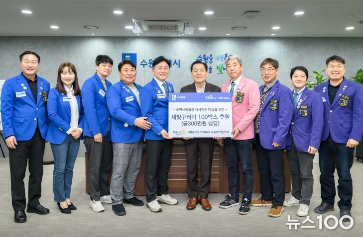 뉴스100 김동초 기자 | 국제로타리 3750지구 수원4지역협의회가 “수원시 취약계층에 전달해 달라”며 수원시에 ‘새빛꾸러미’ 100상자(총 300만 원 상당)를 후원했다.
