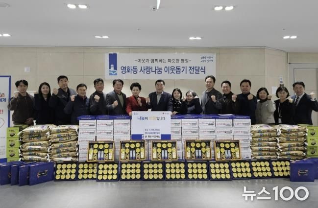 뉴스100 김동초 기자 | 수원시 장안구 영화동 행정복지센터는 지난 10일, 설 명절을 맞아 관내 소외된 이웃들과 다 함께 따뜻한 명절을 보내기 위한 ‘사랑나눔 이웃돕기 전달식’을 개최했다.