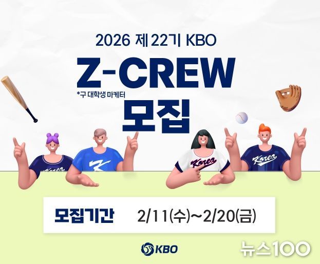 뉴스100 김동초 기자 | KBO가 2월 11일(수)부터 2026 제 22기 KBO Z-CREW(제트크루)를 모집한다.