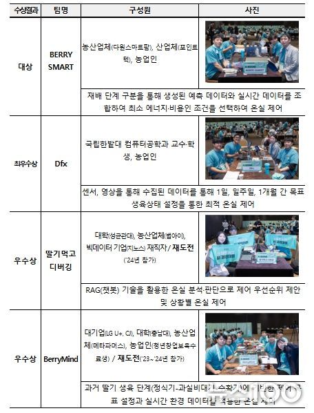 아울러 우수상을 수상한 "딸기먹고 디버깅"은 챗봇 기술을 활용한 상황별 제어, "BerryMind"는 성장단계별 생육데이터에 기반한 실시간 최적화로 눈길을 끌었다.