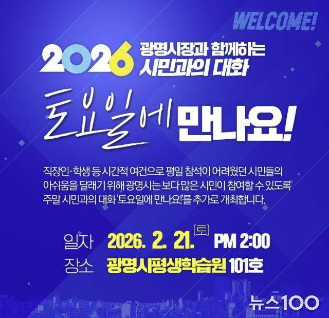 광명시는 오는 21일 오후 2시 평생학습원(철망산로 2)에서 ‘2026년 시민과의 대화-토요일에 만나요!’를 개최한다고 19일 밝혔다.
