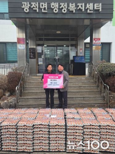 뉴스100 김동초 기자 | 양주시 광적면은 관내 산란계 농장 ‘에그트리’(대표 박현범)가 최근 지역 이웃을 위해 달걀 300판(환가액 약 180만 원)을 기부했다고 밝혔다.