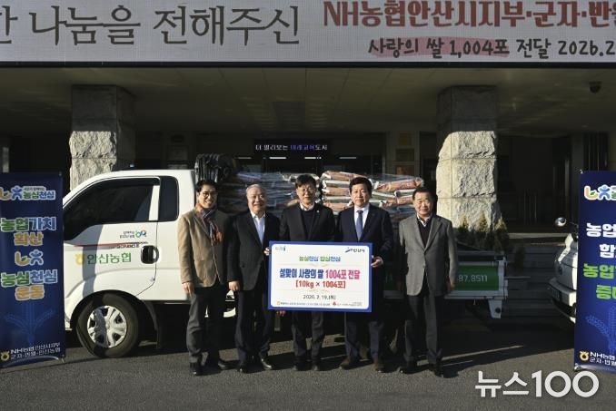 뉴스100 김동초 기자 | 안산시는 지난 19일 NH농협 안산시지부(지부장 주원식)와 지역농협조합 군자농협(조합장 조인선), 반월농협(조합장 최기호), 안산농협(조합장 박경식)으로부터 사랑의 쌀 1,004포(포대당 10㎏)를 기탁받았다고 20일 밝혔다.