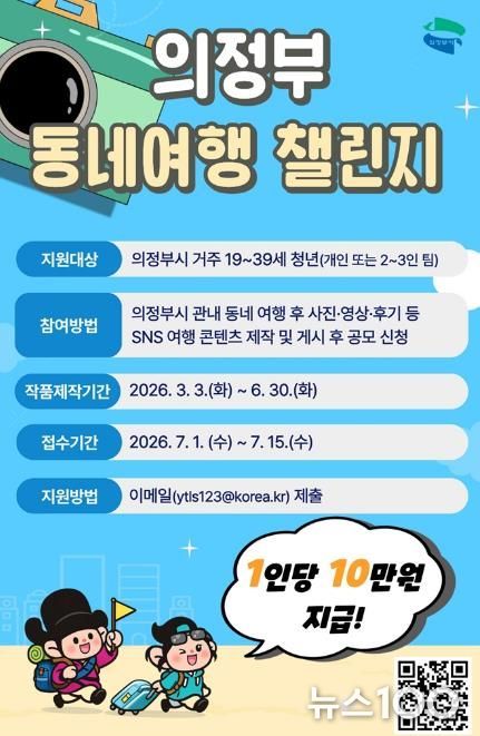 시 관계자는 “이번 동네여행 챌린지가 청년에게 지역 기반 문화·여행 활동 참여 기회를 제공하고, 의정부의 매력을 널리 알리는 계기가 되길 바란다”고 말했다.