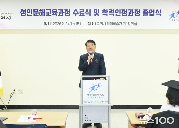 뉴스100 김동초 기자 | 구리시는 2월 24일 구리시평생학습관에서 ‘2025년 성인 문해 교육 과정 수료식 및 학력인정과정 졸업식’을 개최했다.