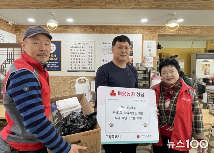 뉴스100 김동초 기자 | 고양특례시 일산동구 백석1동 관내 음식점인 연신내칼국수가 매월 칼국수 5그릇을 백석1동 저소득 가구에게 정기 후원하기로 했다.