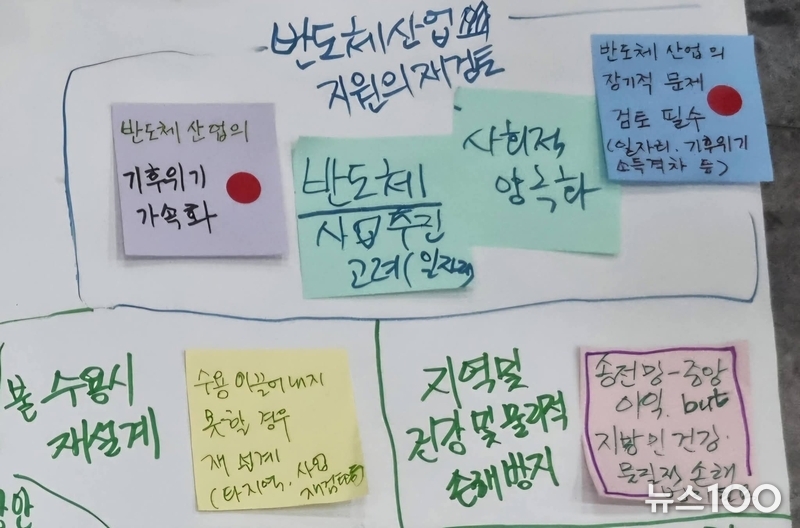 토론 시작 전 한 참석자는 '용인 반도체 국가산단 타당성 검토'를 왜 토론의제로 삼지 않았느냐고 물었으나 토론을 주재한 사람은 답을 하지 않았다고 합니다.