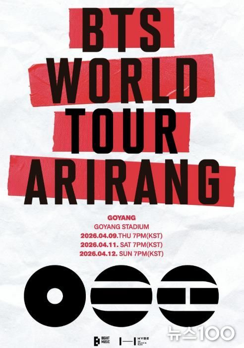 뉴스100 김동초 기자 | 전 세계의 이목이 집중된 방탄소년단의 월드투어 ‘BTS WORLD TOUR ‘ARIRANG’’가 오는 4월 경기도 고양시에서 그 화려한 서막을 알린다.