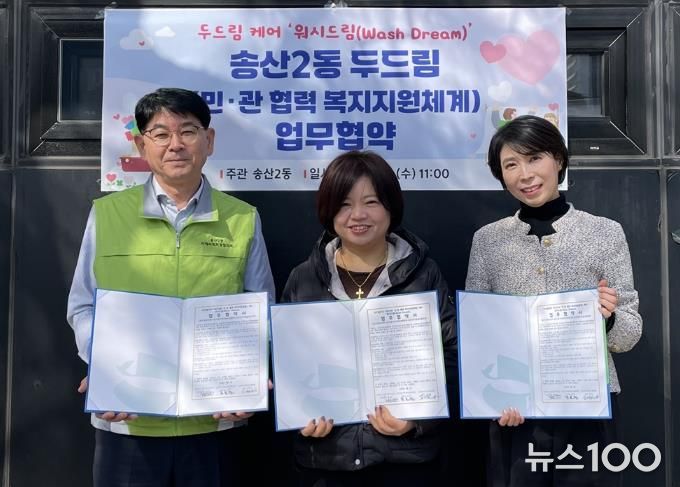 뉴스100 김동초 기자 | 의정부시 송산2동주민센터는 3월 4일 QUEEN크린셀프빨래방, 송산2동 지역사회보장협의체와 취약계층 세탁지원을 위한 두드림(민관 협력 복지지원체계) 케어 ‘워시드림(Wash Dream)’ 사업 업무협약을 체결했다.