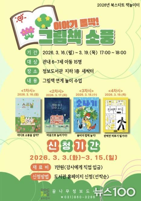 뉴스100 김동초 기자 | 동두천시 꿈나무정보도서관은 3월 16일부터 3월 19일까지 2026년 북스타트 책놀이터 ‘이야기 폴짝! 그림책 소풍’을 운영한다고 밝혔다.