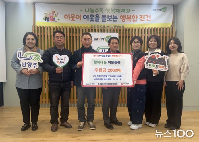 뉴스100 김동초 기자 | 남양주시는 지난 4일 사단법인 건설기계개별연명사업자협의회 남양주․구리지회가 진건읍 취약계층 지원을 위한 후원금 200만 원을 기탁했다고 5일 밝혔다.